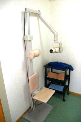 当院では患者様のエックス線被爆の軽減に努めるため、医院の改装を機にレントゲン装置をアナログからデジタル化しました。それにより従来のエックス線被爆の1/5になりました。また現像時間がいらないためすぐに(とはいっても30秒ほどかかりますが)チェアーサイドのモニターに撮影したレントゲンを映し出して患者様に病変を説明出来るようになっています。