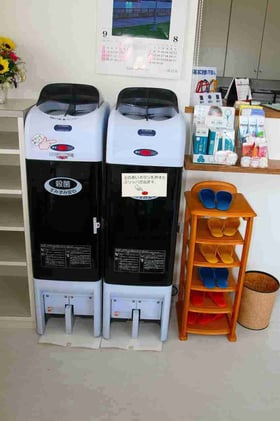 ③先入先出し方式だからいつも殺菌済みスリッパが使えるなどのメリットがあります。