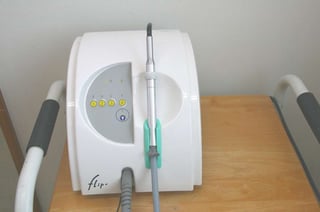 これはレーザーで虫歯の進行度を測定し、数字で表してくれるものです。今までは針のようなもので、虫歯をつついていましたので、それだけでも痛みが生じていやな思いをした方も多いと思います。今までは衛生士がむし歯のチェックしても私が確認しなければならず2度手間でしたが、今は数値を衛生士が書いておけば歯科医師がチェックをするまでもなく、確実に虫歯を判定できます。削るかどうか迷っていたような虫歯でもほぼ100%の確率で判定して治療ができます。
